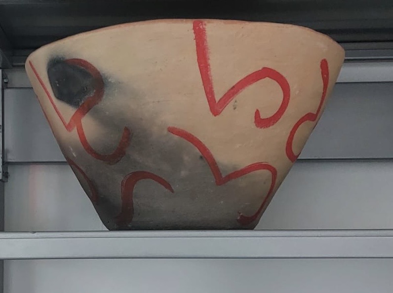 Aardewerk Wastobbe/Pot met Rode Tekens